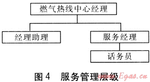 燃?xì)鉄峋€中心根據(jù)業(yè)務(wù)需要,可以劃分一定的服務(wù)管理層級(jí)(見圖4),使客戶提出的不同類型問題得到及時(shí)的處理和解決。