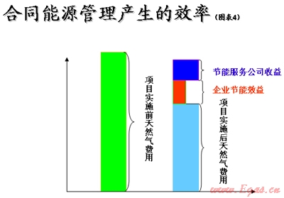 從上述圖示分析,通過節(jié)能服務(wù)公司的運作,一是能促進節(jié)能項目的實施,幫助克服由于實施項目的可能風險所造成的企業(yè)對實施項目的保留態(tài)度。二是輕輕松實施節(jié)能:幫助克服節(jié)能項目經(jīng)濟效益不明顯,占用企業(yè)太多精力的擔心和疑慮。三是減輕節(jié)能項目融資壓力:節(jié)能服務(wù)公司通過同類項目的開發(fā)和大量“復(fù)制”提高項目運做能力,降低項目成本;并且節(jié)能項目的投資來自節(jié)能項目本身產(chǎn)生的節(jié)能效益,減輕了企業(yè)實施節(jié)能項目的融資壓力。