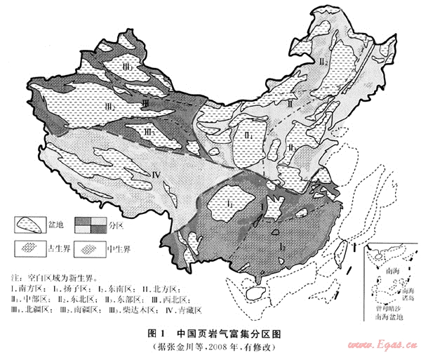 古生代結(jié)束以來(lái),全球性的區(qū)域板塊運(yùn)動(dòng)導(dǎo)致亞洲大陸發(fā)生碰撞作用并經(jīng)受了強(qiáng)烈的擠壓作用[9~10],在各板塊拼合并導(dǎo)致海水區(qū)域性退出的同時(shí),使得古生界海相頁(yè)巖地層經(jīng)受了強(qiáng)烈改造、擠壓變形或隆升剝蝕,在揚(yáng)子地區(qū)普遍形成了大面積暴露及近地表埋藏的古生界頁(yè)巖。而在構(gòu)造相對(duì)穩(wěn)定的華北、塔里木等地臺(tái)區(qū),構(gòu)造保存條件相對(duì)較好,目前仍有埋深不等的多套較大厚度的海相頁(yè)巖地層分布。不同有機(jī)質(zhì)條件、埋藏深度和產(chǎn)烴能力的黑色頁(yè)巖分別可能成為其他層位油氣富集的烴源巖、可能具有原地“成藏”特點(diǎn)[11~12]頁(yè)巖氣的物質(zhì)基礎(chǔ)或者兩種可能;進(jìn)入中生代,陸相沉積逐漸成為主體,主要在中國(guó)北方地區(qū)形成了區(qū)域分布的三疊系(如鄂爾多斯盆地等,也包括川西[13~15])、侏羅系(如準(zhǔn)噶爾[16]、吐哈等盆地)及白堊系(如松遼[17]、海拉爾等盆地)湖相暗色泥頁(yè)巖。雖然新生代的差異性構(gòu)造運(yùn)動(dòng)導(dǎo)致了部分地層的裸露剝蝕,但目前仍有大規(guī)模的殘留保存和區(qū)域分布,結(jié)果導(dǎo)致產(chǎn)生了不同地質(zhì)時(shí)代、埋藏深度和熱演化程度泥頁(yè)巖的同時(shí)發(fā)育。對(duì)于抬升幅度較大、保存條件較差的富含有機(jī)質(zhì)泥頁(yè)巖,雖然它們已不再適合作為常規(guī)天然氣圈閉的源巖基礎(chǔ),但仍有可能是頁(yè)巖氣資源富集的潛在目標(biāo);與古生界和中生界泥頁(yè)巖的多期作用特點(diǎn)不同,新生界泥頁(yè)巖主要發(fā)育在保存條件較好的盆地區(qū)域內(nèi)[18]。由于其他層系天然氣的聚集需要首先滿足其自身對(duì)天然氣聚集的需要,故常規(guī)油氣地質(zhì)分析中的氣源巖(泥頁(yè)巖)將有可能同時(shí)成為頁(yè)巖氣勘探的新對(duì)象。