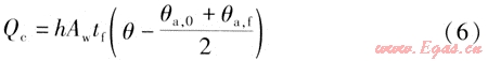 根據(jù)以上假設(shè),隨著風(fēng)機(jī)盤管的工作,室內(nèi)溫度不斷降低,室內(nèi)空氣與墻內(nèi)壁面間的對流傳熱量Qc的計算式為: