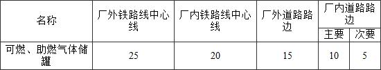 表4.3.6 可燃、助燃?xì)怏w儲(chǔ)罐與鐵路、道路的防火間距(m)