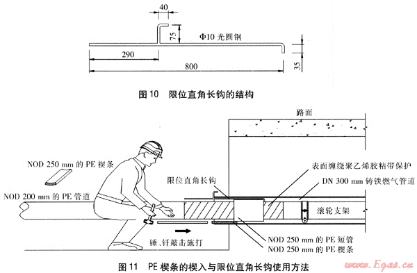 關(guān)鍵詞:燃?xì)夤艿佬迯?fù);鑄鐵管道;聚乙烯管道;滾輪支架;穿插