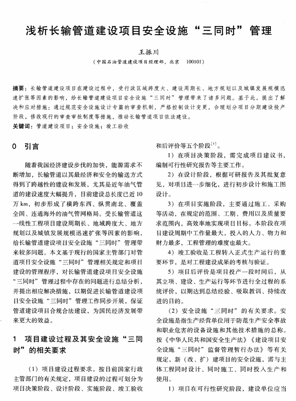 淺析長輸管道建設(shè)項目安全設(shè)施三同時管理