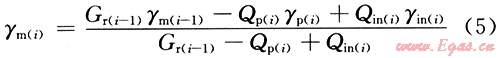 某一注采階段庫(kù)內(nèi)混合流體相對(duì)密度[γm(i)]的數(shù)學(xué)表達(dá)式為: