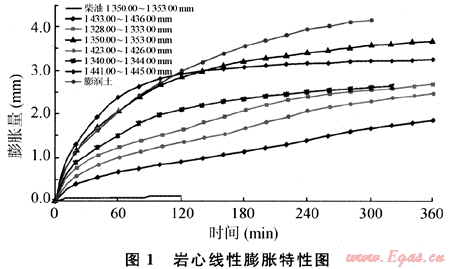 2) 儲(chǔ)層巖石中黏土礦物含量高。黏土礦物中以膨脹性蒙脫石為主,黏土線(xiàn)性膨脹大,水敏性極強(qiáng)。巖石中黏土礦物含量10%~30.0%,其中蒙脫石含量為70%~80%,巖心粉清水線(xiàn)性膨脹量達(dá)到4.0mm,水敏指數(shù)0.71~0.95,水敏性極強(qiáng)(見(jiàn)圖1、表1)。