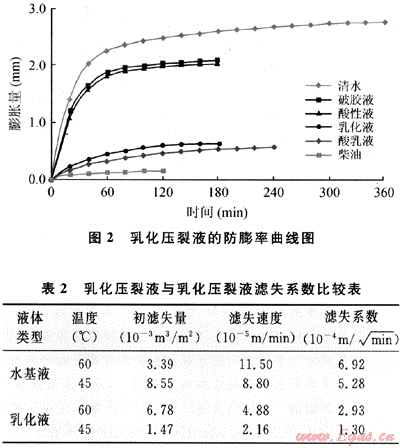 2.1 高防膨效率的低傷害的乳化壓裂液體系