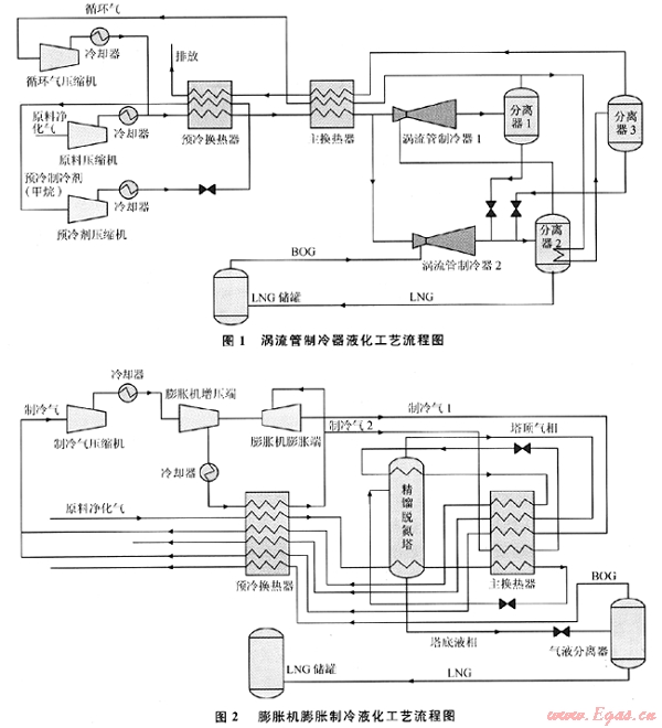 針對高含氮量的天然氣液化,通過模擬計算,對渦流管制冷器液化工藝和膨脹機膨脹制冷液化工藝的主要工藝參數(shù)進行了對比分析,結(jié)果表明在原料氣消耗量、液化單元功耗、LNG中氮氣含量、設(shè)備投資等方面,膨脹機膨脹制冷液化工藝均優(yōu)于渦流管制冷器液化工藝。