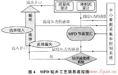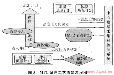 MFC鉆井是通過監(jiān)測微進(jìn)口流量或出口流量,來實(shí)現(xiàn)監(jiān)測鉆井液總流量的微小波動范圍,也是一種精確確定孔隙壓力與破裂壓力的鉆井方法。探測到小的流失與侵入,然后通過一定的方法來調(diào)整返回流量(通過回壓泵與節(jié)流閥的共同作用或只調(diào)節(jié)節(jié)流閥來實(shí)現(xiàn)),結(jié)果使井底壓力平衡地層壓力。