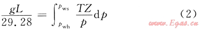 利用井口壓力折算井底壓力是一種成熟方法。按照井筒內(nèi)的能量守恒定律,純氣井靜氣柱條件下靜止氣體壓力隨井深變化關(guān)系符合如下方程[3~6]