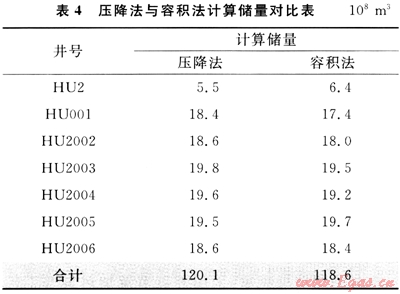 根據(jù)單井初期不穩(wěn)定試井資料,將氣井初期地層壓力折算至統(tǒng)一海拔深度,扣除投產(chǎn)時(shí)間晚2a的HU2005井和HU2006井,其余井壓力系數(shù)在0.9716~0.9736之間(表3),相對(duì)偏差較小,在0.05%~0.1%,說(shuō)明未投產(chǎn)前各井同屬一個(gè)壓力系統(tǒng)。