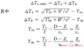 式中△TS和△TR為炮、檢點(diǎn)正常時(shí)差;S、R為炮點(diǎn)和檢波點(diǎn)到CMP點(diǎn)水平距離;口為動(dòng)校正速度;T0C為CMP點(diǎn)的丁T0時(shí)間;T0為基準(zhǔn)面時(shí)間。