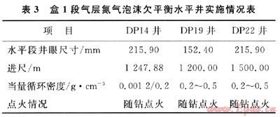 2009年先后針對大牛地氣田的盒1段氣層在DP14井、DP19井和DP22井開展了氮氣泡沫欠平衡鉆水平井的現(xiàn)場試驗,在儲層保護、油氣發(fā)現(xiàn)、自然建產(chǎn)和提高鉆井速度方面取得了顯著效果,表3給出了盒1段氣層氮氣泡沫欠平衡水平井實施情況。