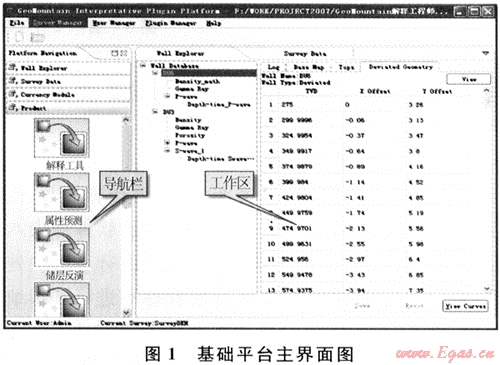 當前,地震解釋軟件種類較多,國外的有大型地震綜合解釋LandMark軟件系統(tǒng)、微機一體化油藏描述的Discovery軟件系統(tǒng),地震微機解釋軟件包SMT,斯倫貝謝公司的勘探開發(fā)一體化軟件包Geoframe系統(tǒng),OpendTect軟件系統(tǒng)。國內有處理解釋一體化的GeoEast軟件系統(tǒng)[1],雙狐微機解釋系統(tǒng)等。LandMark軟件主要有OpenWorks軟件平臺和各個應用程序組成,應用程序都是OpenWorks的插件,均運行于OpenWorks環(huán)境下,受它管理,遵循其設置的規(guī)則和標準,所有應用程序產(chǎn)生的各類數(shù)據(jù)包括地質、地震、測井、人文4大類數(shù)據(jù),均存儲于OpenWorks數(shù)據(jù)庫中,形成了一個統(tǒng)一的數(shù)據(jù)體。盡管如此,在插件的管理方面,開發(fā)人員仍不能方便地進行插件安裝和卸載。而OpendTect軟件具有很好的插件機制,主要由基礎環(huán)境以及在此基礎上運用高級插件技術(Plugin)開發(fā)的功能模塊組成,但在數(shù)據(jù)平臺方面又有所欠缺。.結合四川山地物探的研發(fā)模式,探索一套基礎平臺加功能插件的軟件架構設計,使該解釋平臺(即GeoMountoin軟件系統(tǒng))較好地解決軟件開發(fā)與集成,使之具有很好的擴展性。