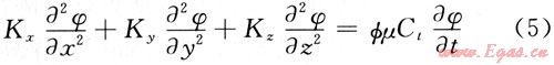 式中Kx、Kv、Kz分別表示3個方向上的滲透率;Ct為壓縮系數(shù);ф為孔隙度;φ為流體勢,在坐標系中z的方向朝上為正,流體勢的定義為: