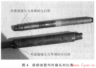 針對(duì)以上問(wèn)題,采用流量計(jì)算公式驗(yàn)證連續(xù)油管內(nèi)連接接頭(內(nèi)徑:11mm,外徑:38.1mm)最大允許施工排量,由結(jié)果可知參數(shù)滿足水平井改造要求,因此采用連續(xù)油管內(nèi)連接接頭,使接頭與本體外徑一致,消除了遇阻遇卡風(fēng)險(xiǎn)(圖4)。在某井上使用連續(xù)油管內(nèi)連接接頭,順利實(shí)施了連續(xù)油管水平段洗井替泥漿和拖動(dòng)布酸作業(yè),優(yōu)化效果明顯。