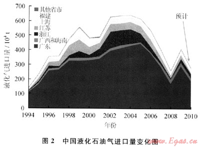 現(xiàn)有煉油廠也將適度增加加工量。預(yù)計(jì)2010年國內(nèi)原油加工量增長將超過10%,達(dá)到4.10×108t以上。液化氣產(chǎn)量可能會增加到2050×104t左右。今明兩年,國內(nèi)液化氣需求的任何增長都可能由國產(chǎn)氣增產(chǎn)來滿足,這可能使進(jìn)口氣市場規(guī)模在2009年重新擴(kuò)大之后再度縮減。