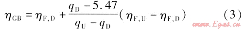 式中ηGB——按照GB 16410的方法測(cè)試的熱效率,%