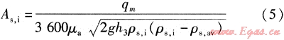 夏季工況下的計(jì)算參數(shù)為:tn=32℃、ti=28℃、h=16m,由式(1)、(2)計(jì)算得,tt=48.2℃、qm=3207.9t/h。熱板坯車間進(jìn)風(fēng)口(電動(dòng)啟閉下百葉窗、防風(fēng)沙外墻百葉窗)面積As,i的計(jì)算式為: