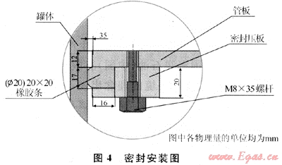 3) 在管板四周和管板之間的連接部分采用圓形橡膠條和膠墊密封,如圖4所示。