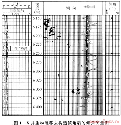 生物礁的高能環(huán)境決定了不論礁體是否白云石化或白云化程度如何,礁相自然伽馬幅度值比正常的長(zhǎng)興組石灰?guī)r值低,通常小于15API,一般在9~12API之間,且無(wú)鈾自然伽馬值也低于周圍巖石,同時(shí)具有較高的電阻率值,補(bǔ)償中子和補(bǔ)償聲波值與致密石灰?guī)r一致。由于成層性差、無(wú)層理和高電阻率,地層傾角為雜亂模式或無(wú)矢量點(diǎn)的空白模式;成像測(cè)井的靜態(tài)和動(dòng)態(tài)圖顯示顏色較為均一致密塊狀特征。礁灘相自然伽馬值略高,識(shí)別相對(duì)困難,易發(fā)育儲(chǔ)層,可根據(jù)與礁核的關(guān)系和成像測(cè)井的巖石結(jié)構(gòu)特征加以識(shí)別。測(cè)井解釋X井生物礁厚度約36m。