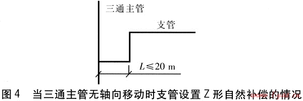 ② 當三通主管允許有軸向位移時,三通主管的軸向位移將使支管產(chǎn)生側(cè)向位移,此時應控制三通到主管補償裝置的距離,保證三通處主管的最大軸向位移不大于50mm。三通處主管的最大軸向位移smax的計算式為:
