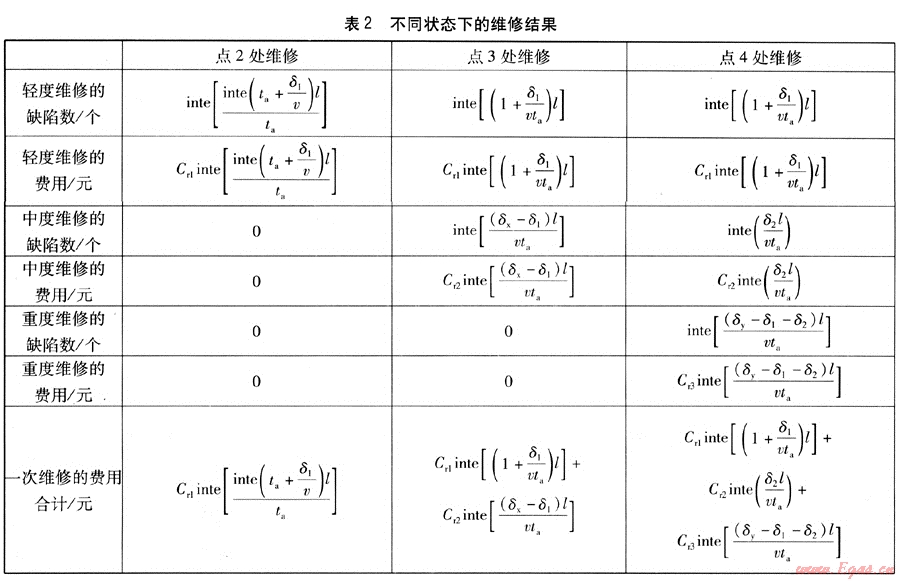 ⑤ 不同狀態(tài)下發(fā)生的維修費(fèi)用