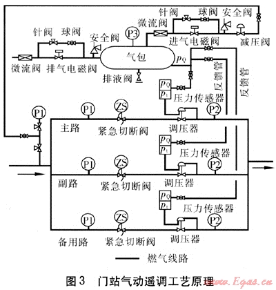 深圳市燃氣集團股份有限公司門站氣動遙調(diào)系統(tǒng)的工藝原理見圖3。