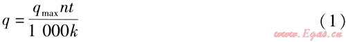 根據(jù)GB 50015—2003《建筑給水排水設(shè)計(jì)規(guī)范》和地?zé)崴?yīng)洗浴用水的特點(diǎn),對(duì)洗浴用水供水系統(tǒng)設(shè)計(jì)計(jì)算以及水溫、水量、水質(zhì)進(jìn)行確定。確定洗浴用水的供水溫度為45℃,最高日用水定額為40L/(人·d)。全日制供水系統(tǒng)的年洗浴熱水用量q的計(jì)算式為: