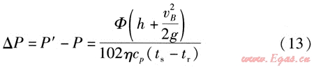 由以上分析可知,對(duì)于同一工程,如果鍋爐熱功率相同,供回水溫度相同,供熱面積相同,常壓鍋爐供熱系統(tǒng)要比有壓鍋爐供熱系統(tǒng)循環(huán)泵的功率高,二者功率差△P的計(jì)算式為: