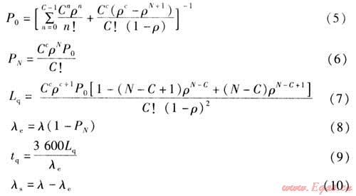 根據(jù)上述特點(diǎn)可知,瓶裝液化石油氣呼叫中心顧客流到達(dá)的情況符合泊松流的特征,即具有平穩(wěn)性、無后效性、普通性、有限性的特點(diǎn)。根據(jù)運(yùn)籌學(xué)理論中關(guān)于泊松分布與負(fù)指數(shù)分布的密切關(guān)系可知,如果顧客流是泊松流,則顧客的服務(wù)時間一定呈負(fù)指數(shù)分布。由此可知,瓶裝液化石油氣呼叫中心的顧客流是泊松流,顧客的服務(wù)時間呈負(fù)指數(shù)分布。因此,瓶裝液化石油氣呼叫中心的顧客排隊(duì)現(xiàn)象符合排隊(duì)論中的單隊(duì)對多坐席的泊松輸入、負(fù)指數(shù)服務(wù)、顧客源為無限源的模型,即M/M/C/N/∞系統(tǒng)模型。
