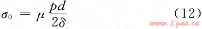 式中:σ0為管道的軸向應(yīng)力,MPa;μ為泊桑比,取0.3;δ為管道壁厚,mm;p為管道設(shè)計(jì)內(nèi)壓力,MPa;d為管道內(nèi)徑,mm。