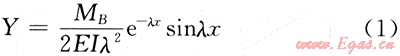 式中:EI為彎曲剛度;K為彈性地基的彈簧常數(shù);MB為B點(diǎn)彎矩。