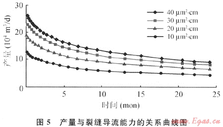 4.3 裂縫導(dǎo)流能力對(duì)氣井產(chǎn)量的影晌