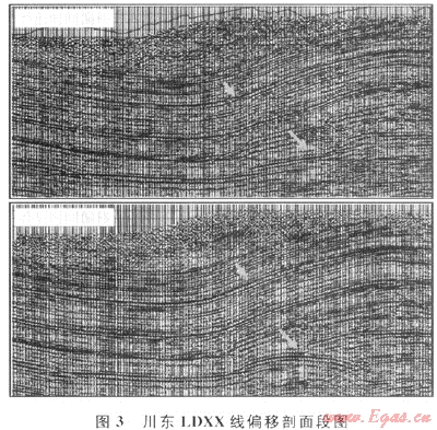摘要:目前,疊前時(shí)間偏移處理技術(shù)廣泛應(yīng)用于油氣田的地震勘探資料處理中,影響疊前時(shí)間偏移成像的最主要因素就是數(shù)據(jù)品質(zhì)。四川盆地東部地區(qū)由于地表?xiàng)l件復(fù)雜,資料噪聲較重,野外采集通常采用變化的觀測系統(tǒng)施工,部分地段炮檢距分布非常不均勻,造成資料品質(zhì)不能滿足疊前時(shí)間偏移的需要。通過對(duì)川東地區(qū)一條二維測線疊前時(shí)間偏移成像效果的試處理分析,總結(jié)出一套提高疊前時(shí)間偏移成像質(zhì)量的技術(shù)方法,即利用偏移前道集去噪技術(shù),提高道集資料信噪比;運(yùn)用道內(nèi)插技術(shù),改變由于野外施工造成數(shù)據(jù)分布不均的現(xiàn)象。最終使得數(shù)據(jù)品質(zhì)能夠滿足疊前偏移處理的條件。