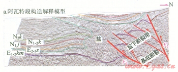 阿瓦特段北起北部構(gòu)造帶,向南推覆到溫宿凸起之上,形成阿瓦特膏鹽巖推覆體。