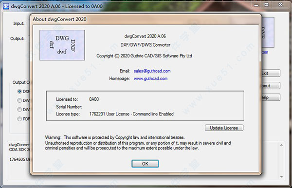 4、至此,dwgConvert(AutoCAD版本轉(zhuǎn)換器) 2020 A.06破解版成功注冊(cè)破解,運(yùn)行打開軟件,用戶可以無限制免費(fèi)使用啦