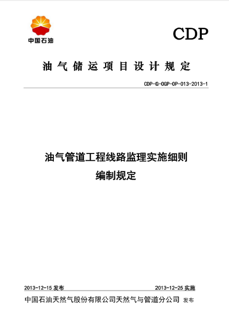 本文件適用于中國(guó)石油天然氣與管道分公司所轄的原油、成品油和天然氣管道建設(shè)項(xiàng)目。