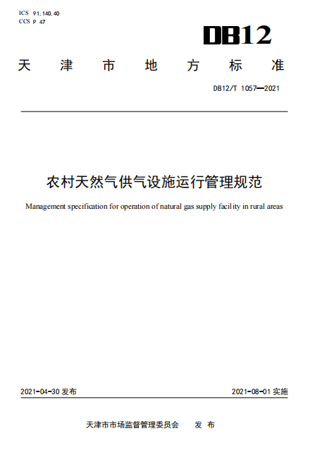 《農(nóng)村天然氣供氣設(shè)施運行管理規(guī)范》 DB12∕T 1057-2021 發(fā)布