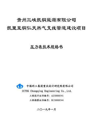 天然氣支線管道建設(shè)項目站場控制設(shè)備自控_壓力表技術(shù)規(guī)格書